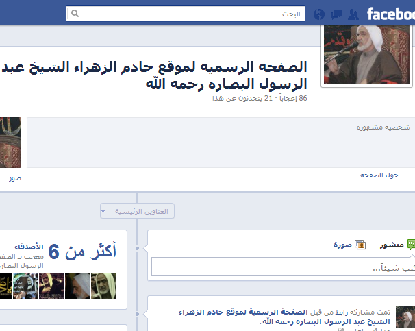 الصفحة الرسمية لموقع خادم الزهراء الشيخ عبد الرسول البصاره رحمه الله